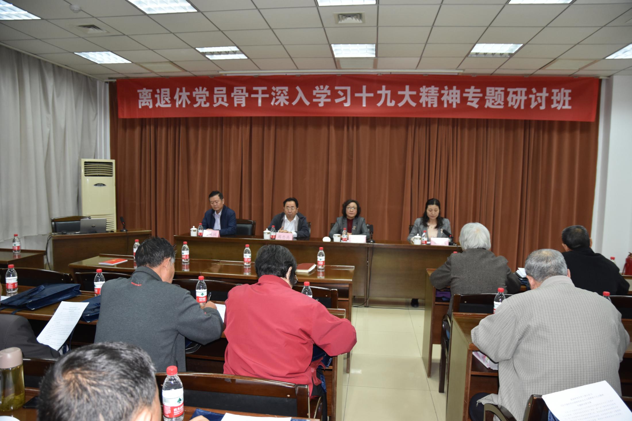 10月25日上午,学校离退休党员骨干“深入学习习近平新时代中国特色社会主义思想和党的十九大精神”研讨班开班。党委副书记朱莉出席开班仪式并讲话,充分肯定离退休党员在学校和谐稳定发展中发挥的积极作用,要求离退休干部党委和离退休工作处继续做好政治引领和服务保障工作,牢牢把握为党和人民的事业增添正能量的价值取向,以改革创新精神积极稳妥推进离退休各项工作高质量发展。