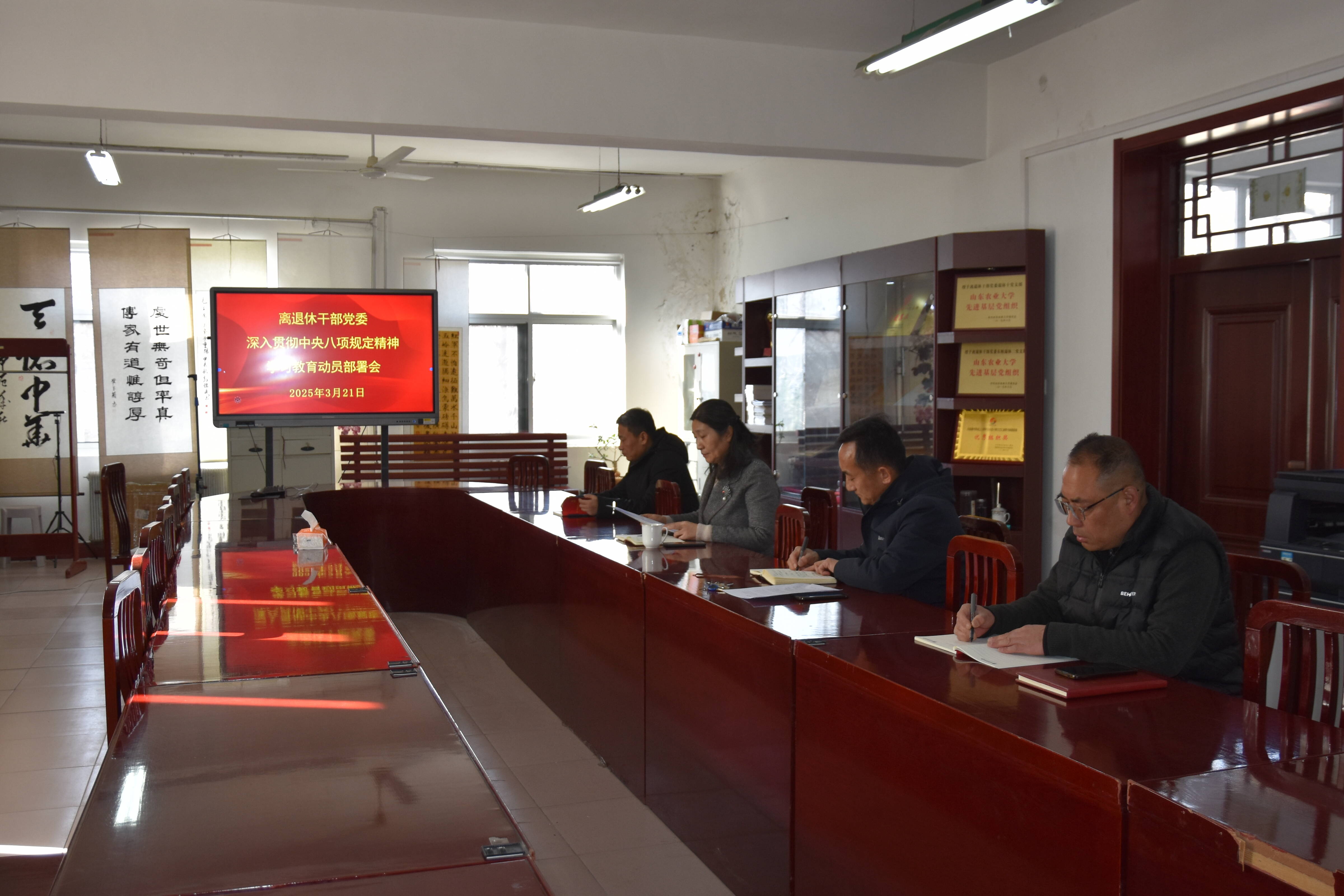 3月21日,离退休干部党委召开党委会,认真传达学习学校党委《关于在全校开展深入贯彻中央八项规定精神学习教育的实施方案》,研究部署离退休干部党委在各级离退休党组织和广大离退休党员干部中开展深入贯彻中央八项规定精神学习教育工作。