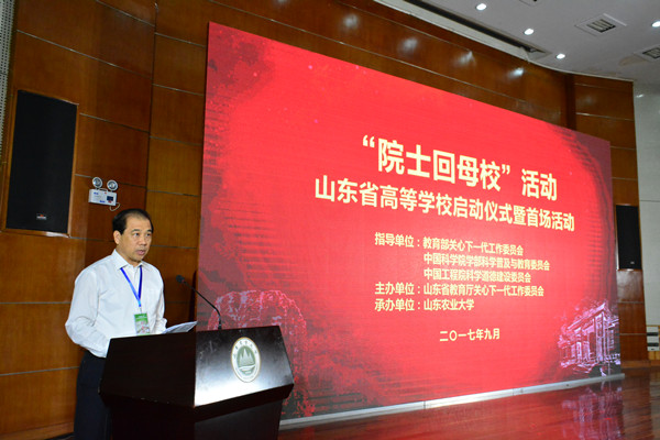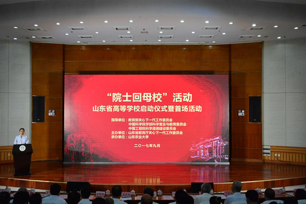 9月16日,由教育部关心下一代工作委员会、中国科学院学部科学普及与教育委员会和中国工程院科学道德建设委员会指导,山东省教育厅关心下一代工作委员会主办的“院士回母校”山东省高等学校启动仪式暨首场活动在山东农业大学举办。