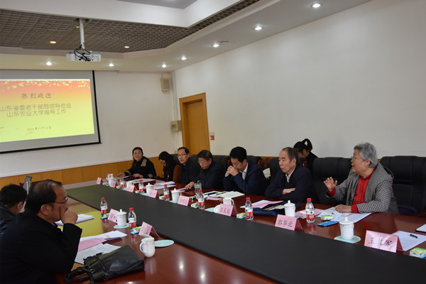 张明志向吕德义一行介绍了学校办学情况和办学特色。他说,多年来,山农大一直高度重视老干部工作。在省委老干部局关心支持下,坚持围绕中心、服务大局,牢牢把握为党和人民的事业增添正能量的价值取向,注重政治引领、注重作用发挥、注重精准服务、注重自身建设,坚持把建设高水平文化养老作为学校文化建设的重要内容。希望各位领导、专家对学校各项工作予以指导,提出宝贵意见建议,进一步助力农大事业发展,为我省经济社会发展再作新贡献。