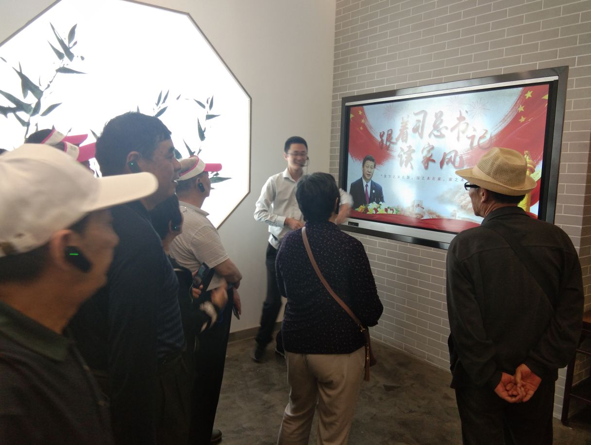 家风习习,儒风昭昭。在家风教育基地,解说员带领大家观看“八德”、“百家风”壁刻及“观过知仁”之门,瞻仰“孔颜乐处”雕塑,聆听颜氏家训,漫步正己桥、通慧桥,走在明心湖边……特别是在中华家风馆和国学堂,更是深刻领会了“百家风、儒家风、中国风”三大文化内涵,老同志饶有兴趣地进行智能化互动体验。这里优美静谧的自然环境、博大精深的儒家文化和厚实淳朴的颜氏家风家训,给大家留下来深刻的印象。