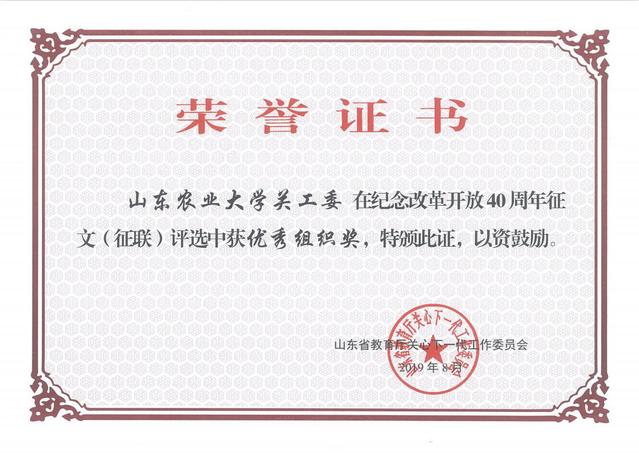 近日,省教育厅关工委通报全省教育系统纪念改革开放40周年征文(征联)评选获奖情况,我校关工委荣获最佳组织奖,14篇作品获一等奖,18篇获二等奖,23篇获三等奖,获奖数量和质量均居全省高校前列。
