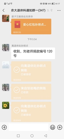本活动坚持“依法组织,广泛发动,坚持自愿,鼓励奉献”原则,通过布告栏通知和微信群发布等线上线下途径,号召广大老同志发扬“我为人人,人人为我”社会互助友爱精神,为社会公益爱心事业继续发光发热。老同志们纷纷响应,踊跃参加。令人特别感动的是,许多老同志克服诸多不便,想方设法地捐赠。家属院的老同志专门去指定的离退休办公室捐,居住外地的老同志以红包和转账方式捐,行动不便和不会线上捐款的老同志积极委托别人捐,甚至有的老同志家庭经济困难,也进行了捐款。一张张钞票,一个个红包,一次次转账……用涓涓爱心汇成潺潺暖流,饱含着老同志深厚的教育情怀,传递着老同志助学兴教的正能量,寄托着老同志对新时代美好生活的感恩之情。