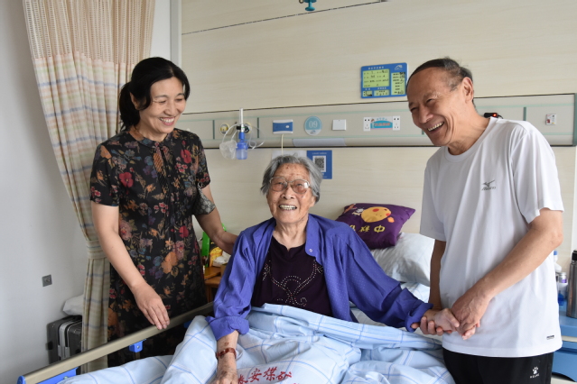 徐剑波书记向李毓椿书记介绍了学校近期各项工作取得的成就和主题教育开展情况等。徐剑波书记关切询问李毓椿同志衣食起居情况,看到老书记和老伴都身体健康精神矍铄,徐书记非常高兴。同时要求离退休工作处要高质量做好老领导老同志的服务工作。