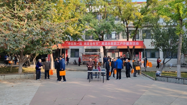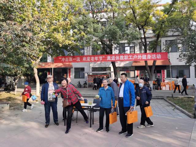 又是一年重阳日,不似春光胜春光。2023年九九“老年节”到来之际,离退休工作处为广大老同志精心举办了“冲击双一流·欢度老年节”户外健身活动。