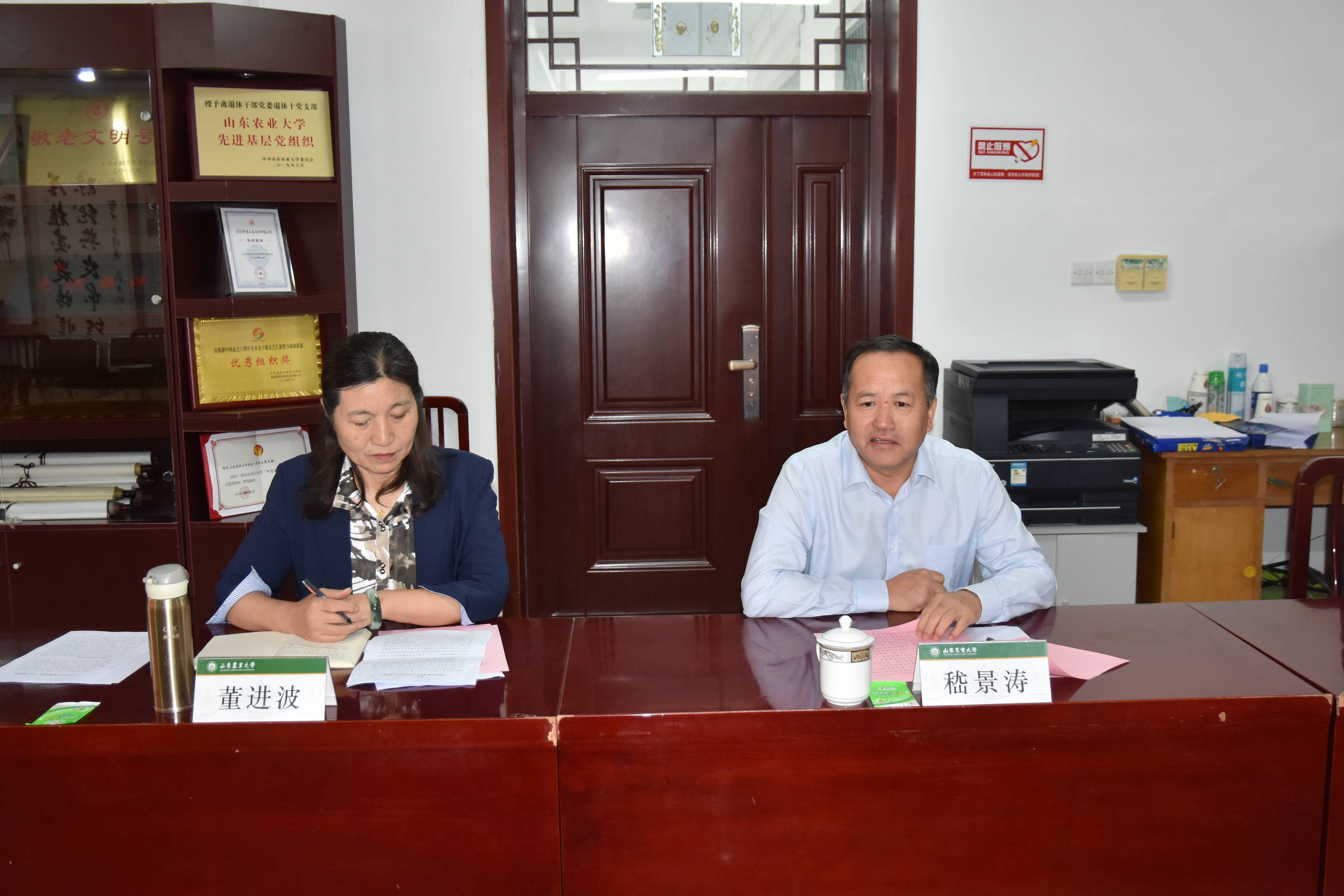 张海泉对我校发展成绩表示祝贺,对学校离退休干部工作予以高度评价。他指出,山东农业大学离退休工作政治站位高、落实力度大、创新举措实,在全省高校中始终走在前列。学校主动将离退休党建工作融入学校发展大局,特别是主动为离退休党员开展老年心理健康服务专题讲座,在党建与业务深度融合等方面探索了宝贵经验。针对下一步工作,他建议:一是要擦亮工作品牌,在党建融合、文化养老、关心下一代以及老干部作用发挥等领域形成可复制可推广的“山农经验”,擦亮品牌特色;二是要打造文化健康养老特色,深化校企社共建,探索文化+健康养老新模式。